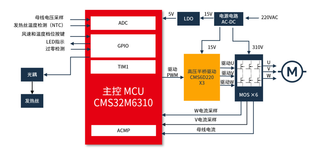 中微半导体(深圳)股份有限公司(以下简称:中微半导 股票代码:688380)针对这一痛点,推出基于电机控制MCU CMS32M6310及驱动芯片CMS6D220开发的11万转高性价比高速风筒整体解决方案,该方案以高性能、高可靠、低成本为核心优势,精准匹配公模市场对“高转速、小体积、低成本、快上市”的核心需求,帮助客户在保障产品性能与可靠性的前提下,大幅缩短研发周期,增强终端价格竞争力。